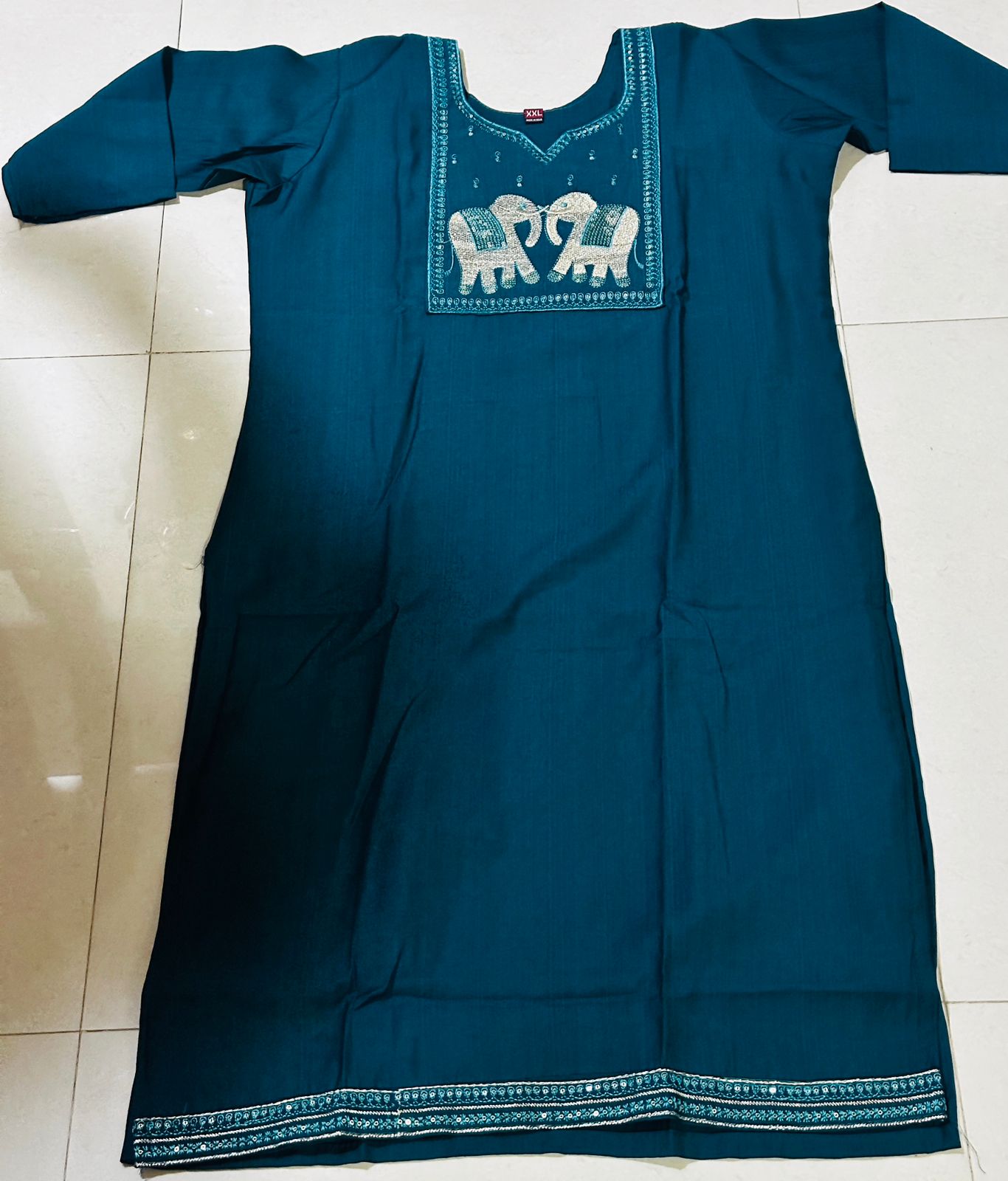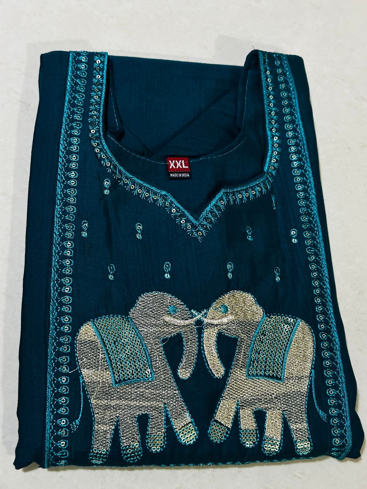 | Motif | Prominent Sequin Elephant Design on Chest |